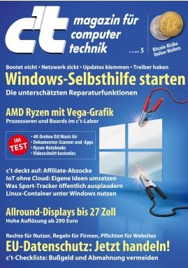 Gleich zwei eigene und einen gemeinsamen Artikel zum Thema DSGVO für Bürger und Unternehmen von RA Heidrich finden sich in der c’t 5/2018